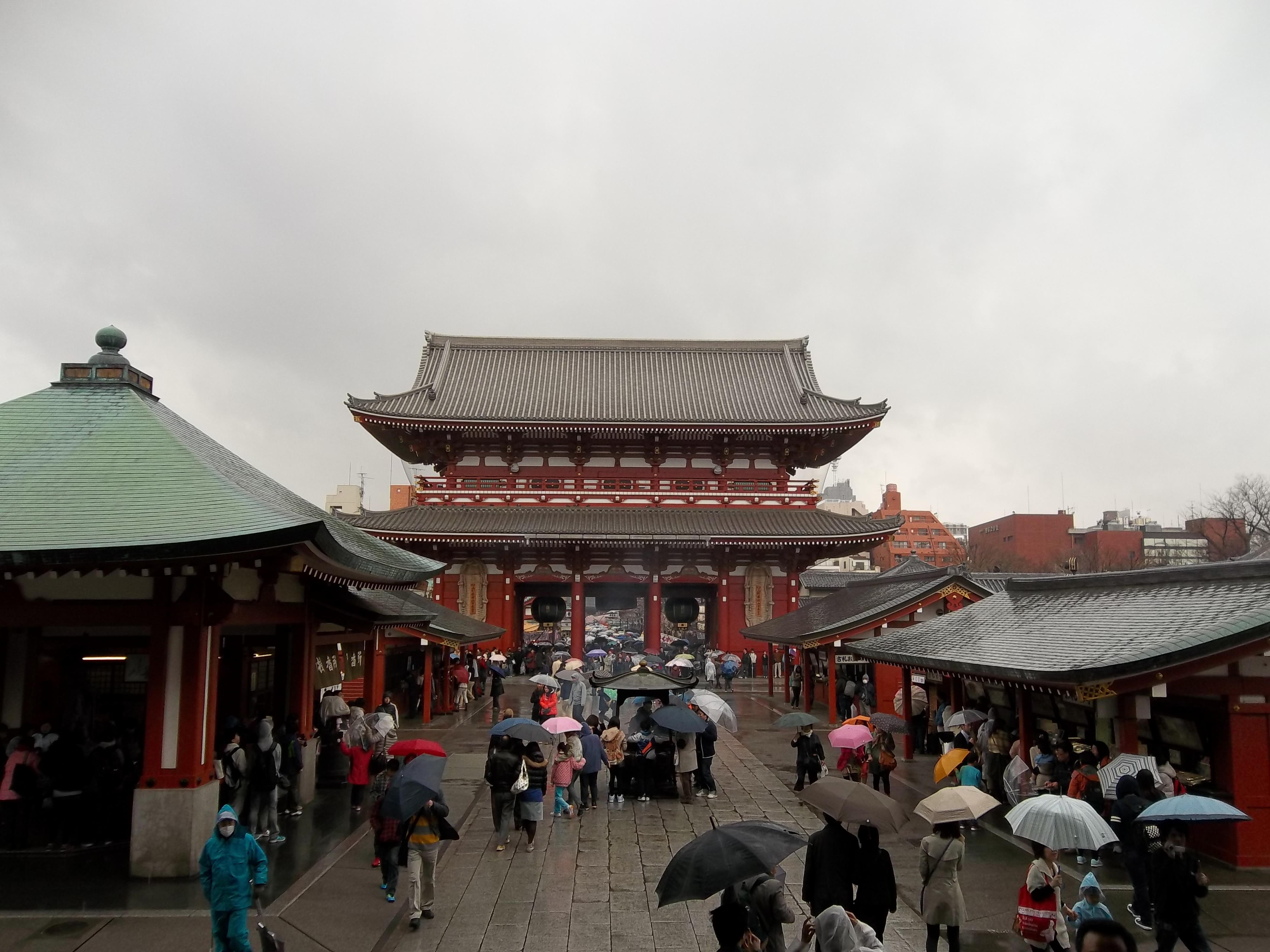 We entered the temple, out of the by now heavy rain, and in front of us was the golden altar and waited for the ceremony to begin at 2PM. The bells rang and we didn’t wait for the ceremony to go too far before we headed to off into the rain. On the way out we found a couple of small shrines and took a few snaps and then started the trek to the Sky Tree.